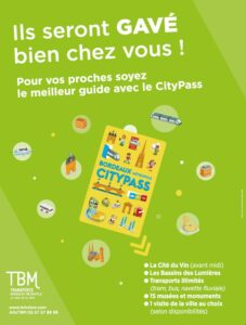 Campagne touristique TBM Commande de l’office du tourisme de Bordeaux pour mettre en avant le CityPass.Mise en forme par les graphistes de Keolis Bordeaux Métropole d’après mes idées, recommandations et croquis.Reprise des célèbres expressions du Sud-Ouest « Gavé », « Chocolatine » et « Poche ».
